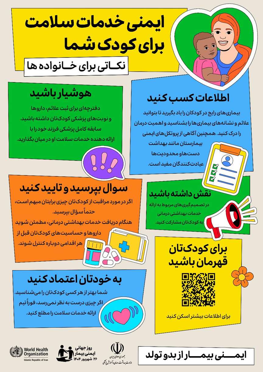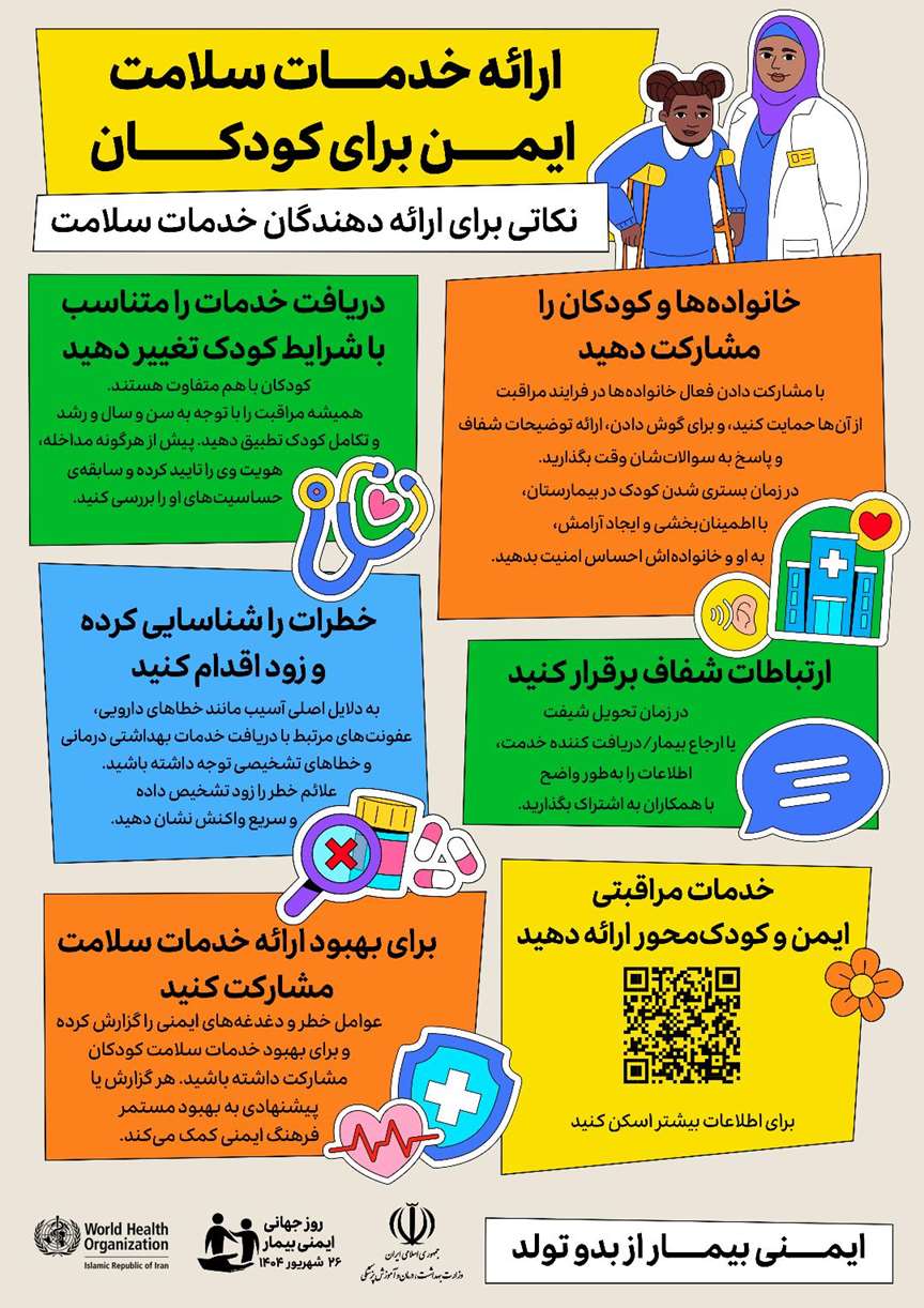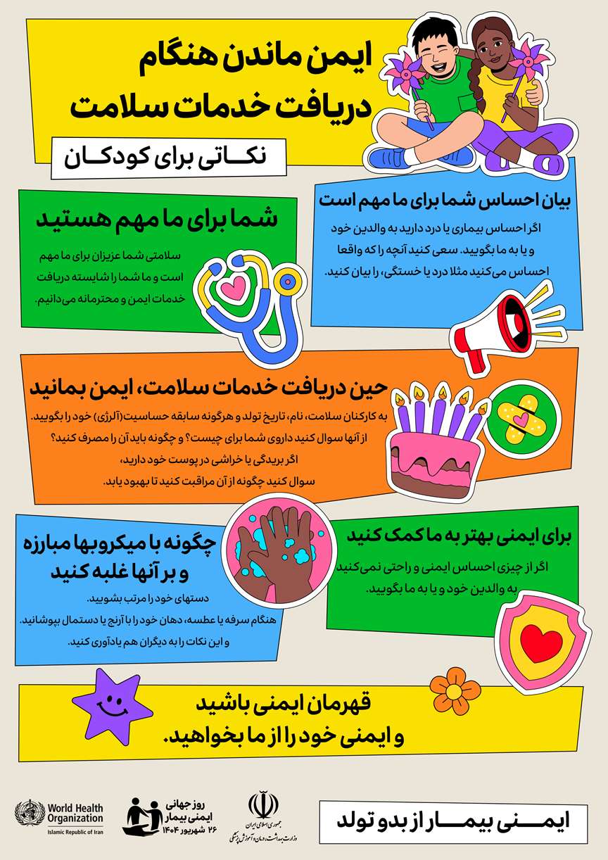 روز جهانی ایمنی بیمار فرصتی برای افزایش آگاهی عمومی و تقویت همکاری بین بیماران، کارکنان بهداشتی، سیاست گذاران و رهبران مراقبت های بهداشتی برای بهبود ایمنی بیمار است.
