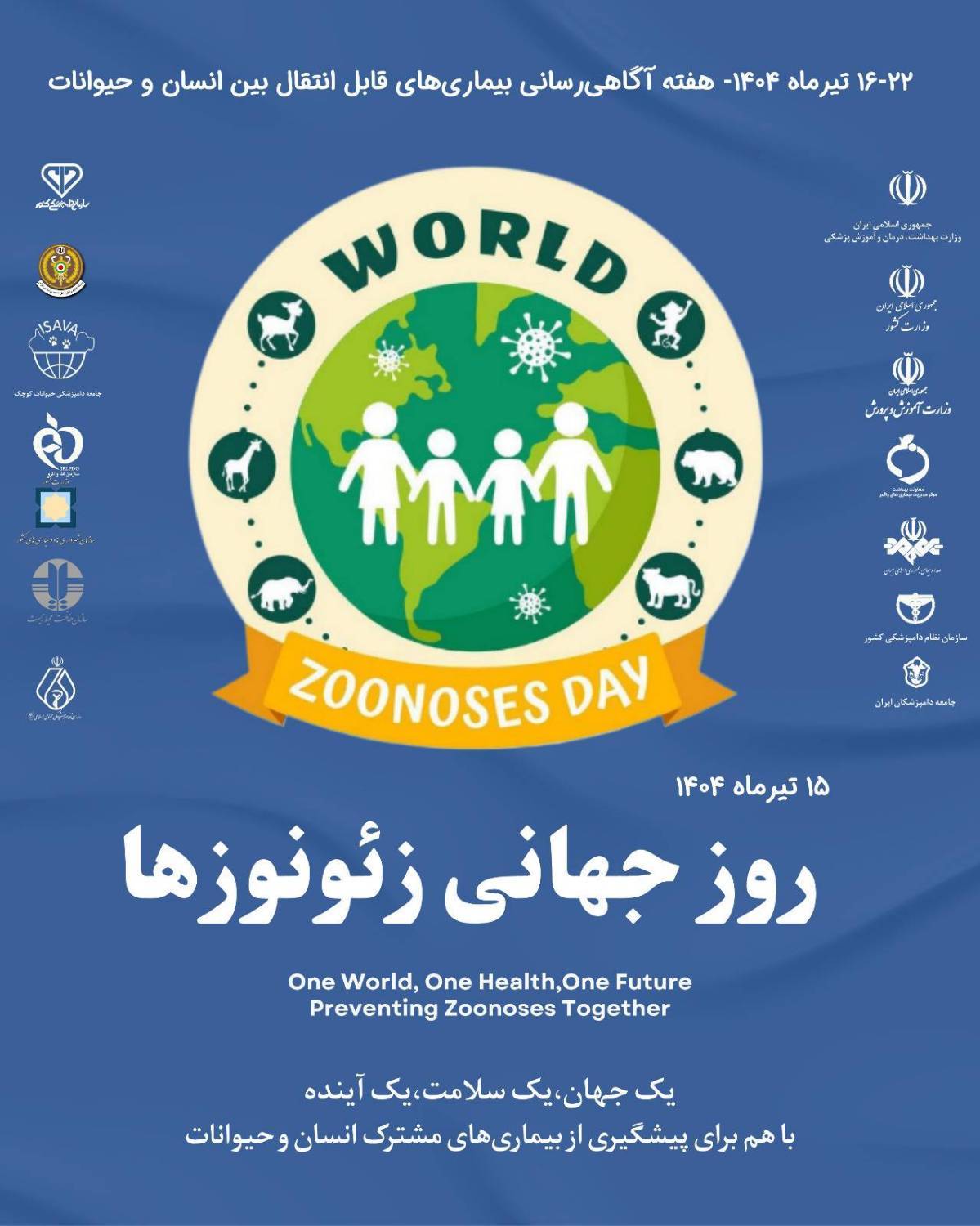 شعار: "یک جهان،یک سلامت، یک آیندهباهم برای پیشگیری از بیماریهای قابل انتقال بین انسان و حیوانات"